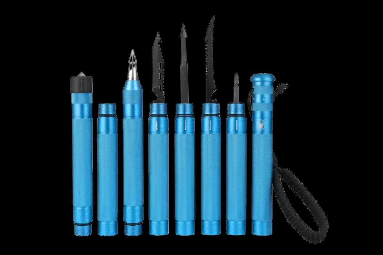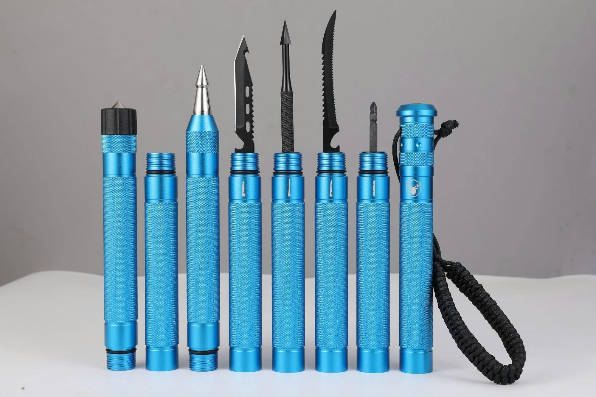 Depending on the model, it can include tools like a fire starter, glass breaker, tactical knife, whistle, fishing kit, and more — everything you need to survive or thrive outdoors.